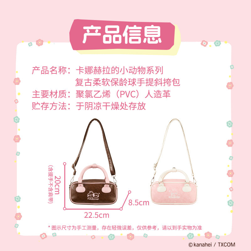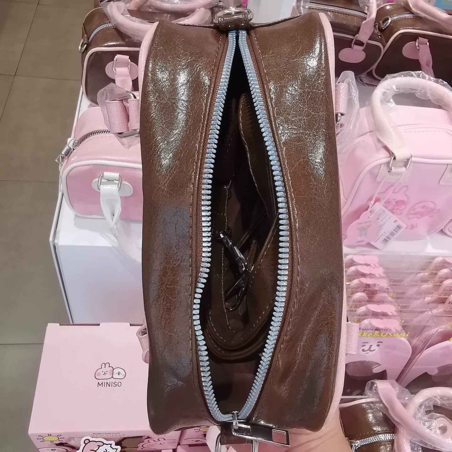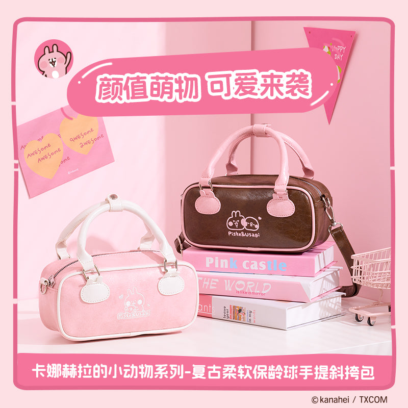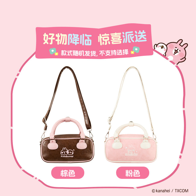 Kanahei X Miniso | Bowling Style Pink & Brown Handbag Usagi Piske Pink Rabbit White Chicken - Kawaii Make Up Bag Item Decoration