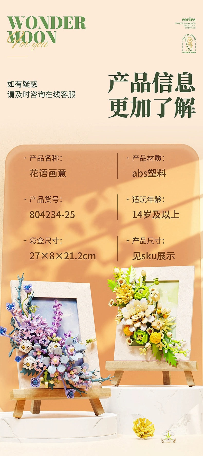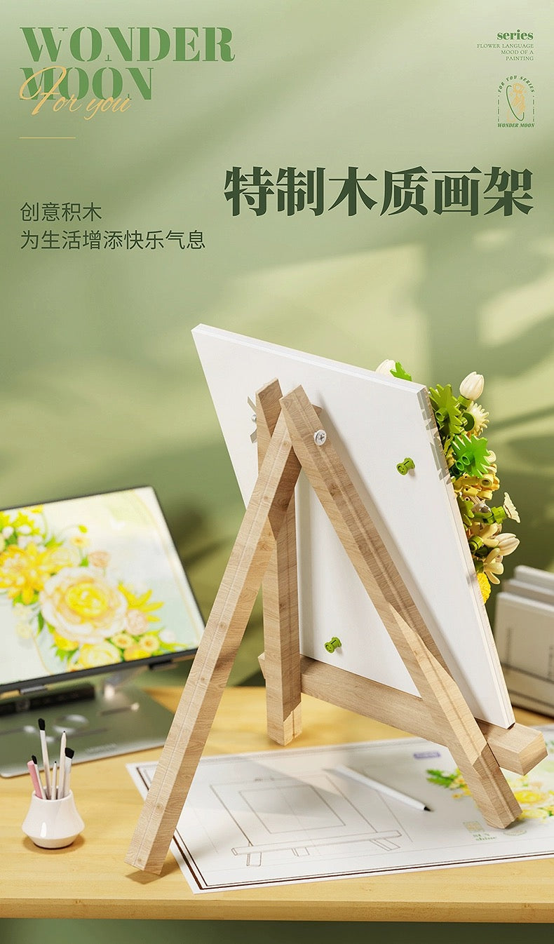 Block Building Romantic Flower Frame | Purple Blue White Green - DIY Handmade Mini World Miniature Gift