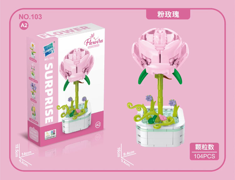 Mini Block Building Flower Series 1 | Daisy Pink Rose Sunflower - Tiny Particle Assembly DIY Handmade Gift