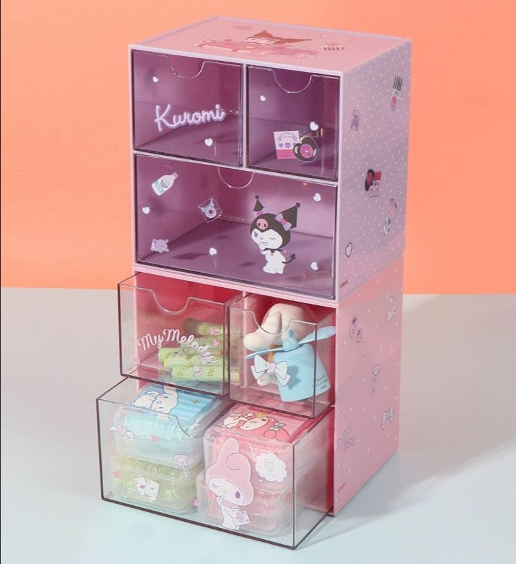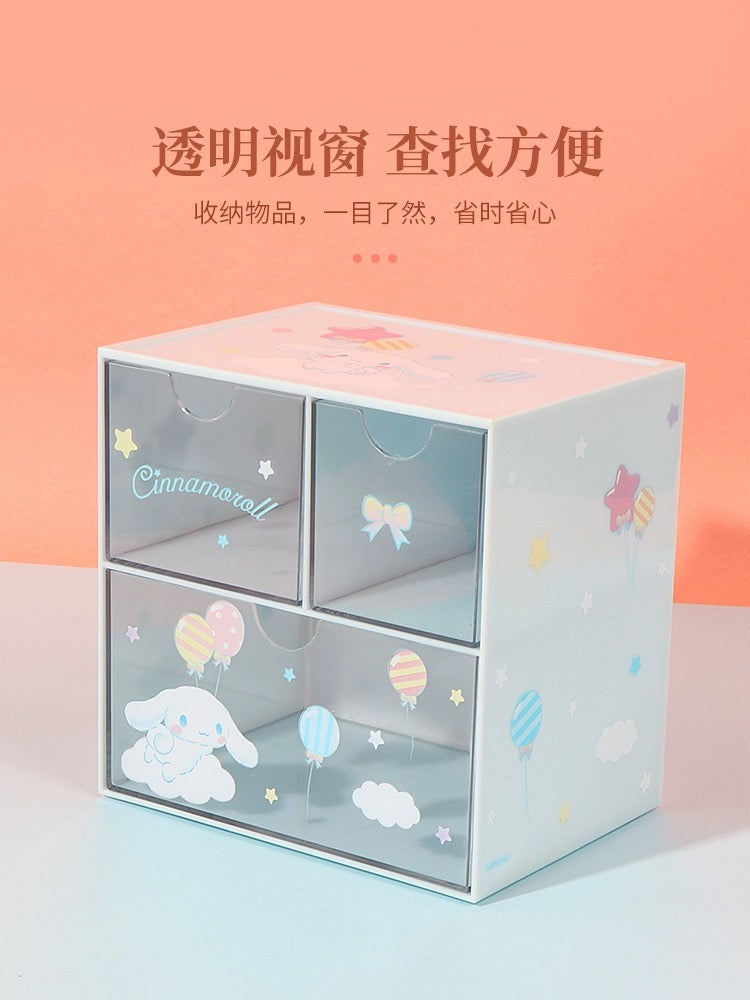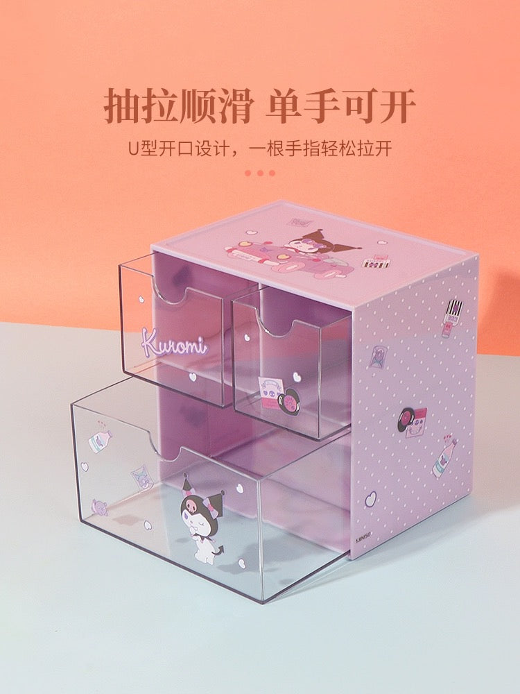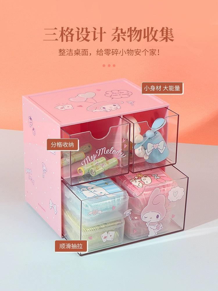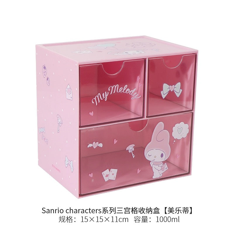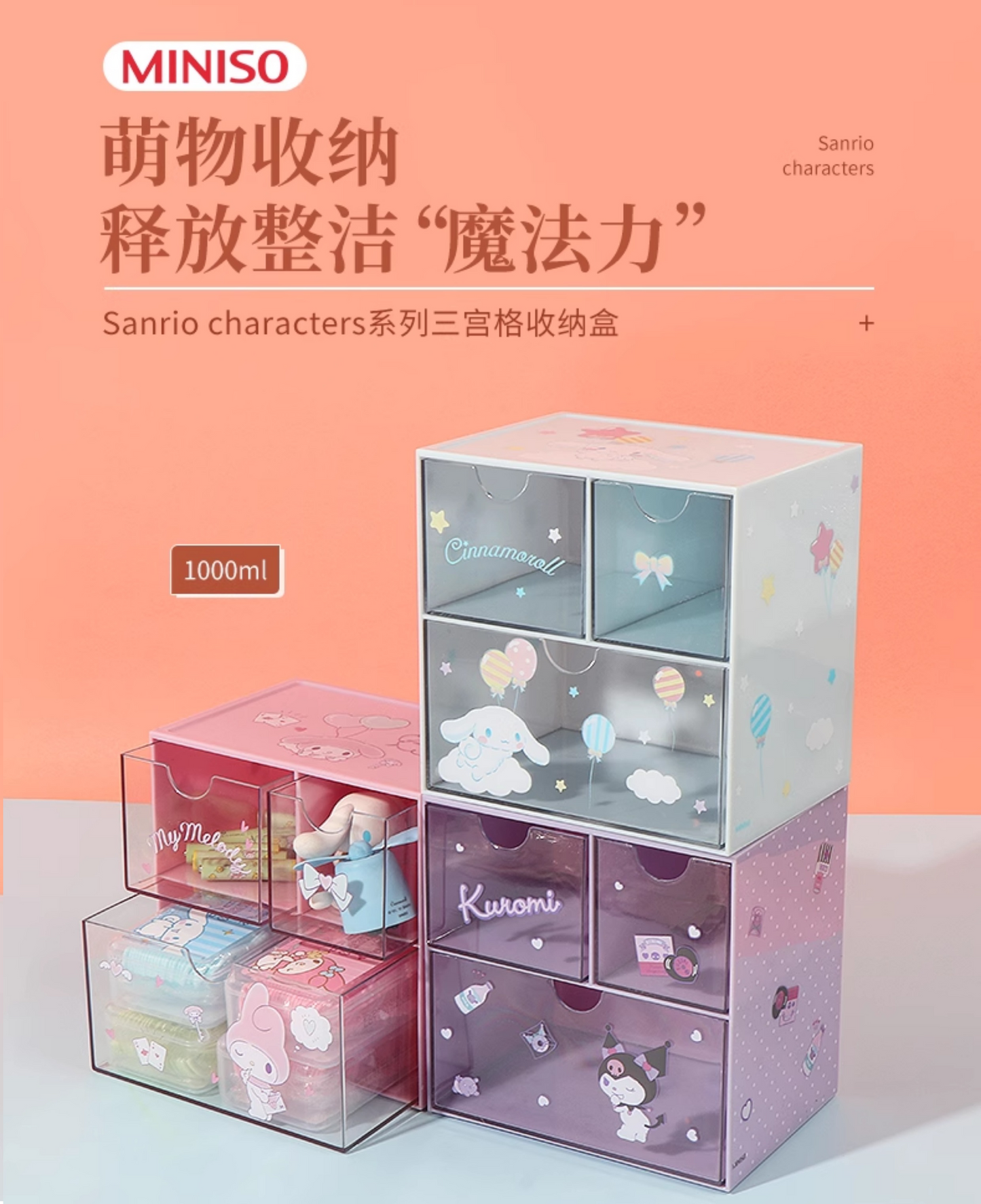 Miniso X Sanrio My Melody Kuromi Cinnamoroll Triple Box Storage Drawer - Kawaii Stationey Items Desk Helper