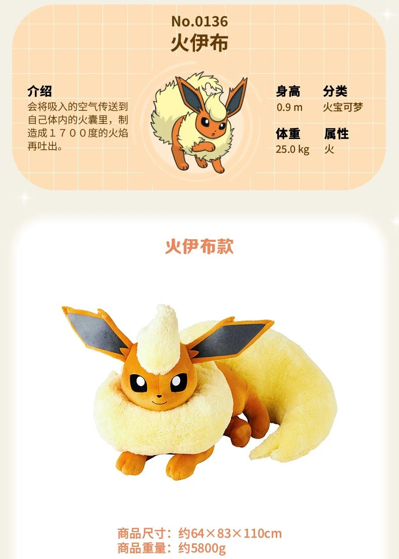 [Pre Order] Japan Cartoon Pokemon Center Eevee Evolution Evolve 1:1 Plush Doll | Vaporeon Jolteon Flareon - Super Giant Plush Doll Kawaii Decoration