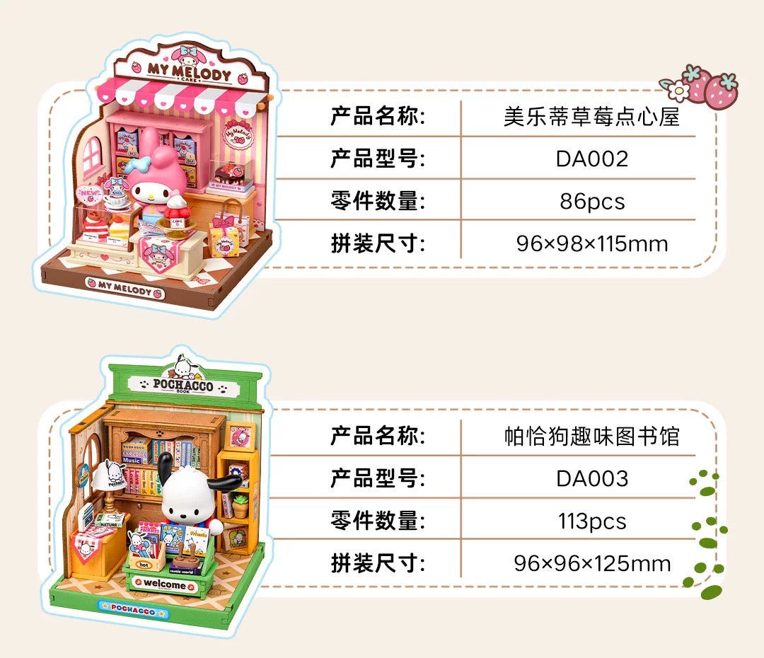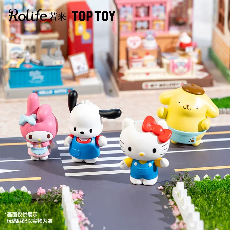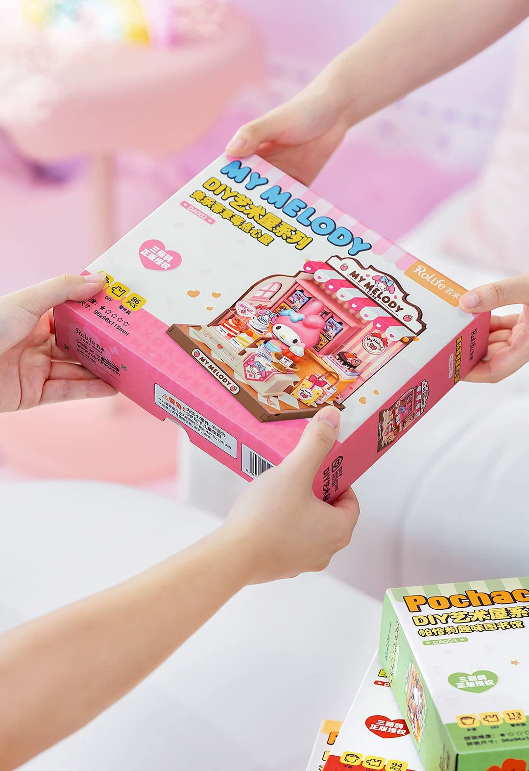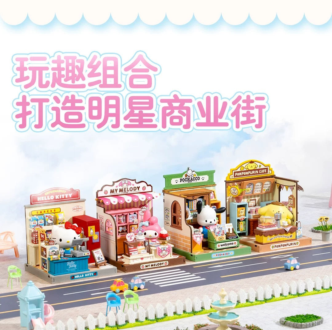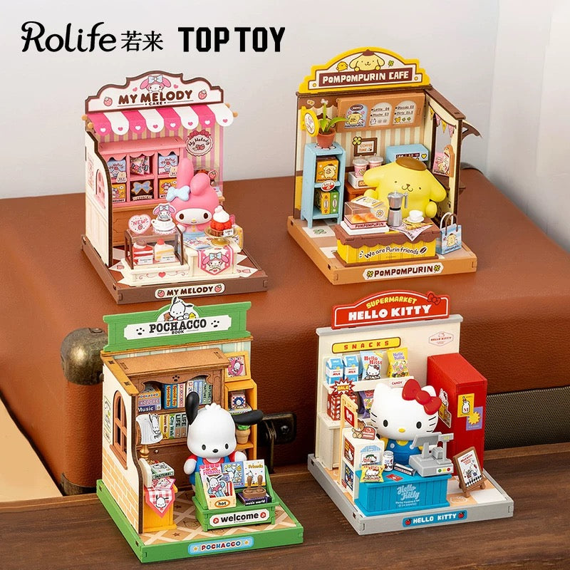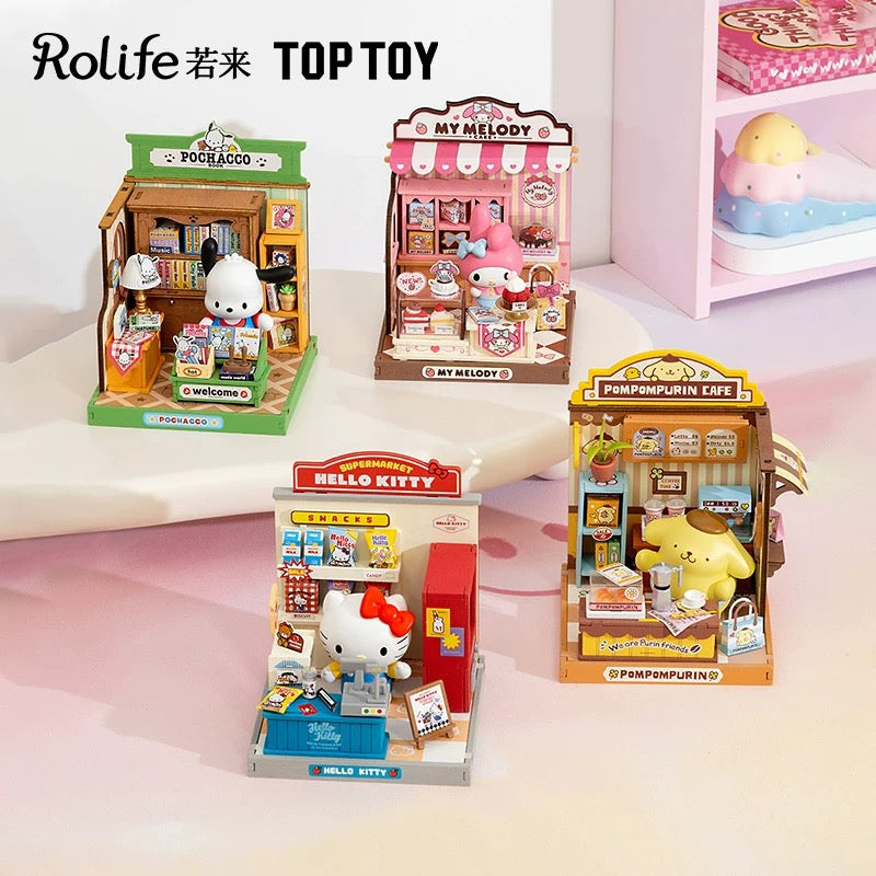 Rolife x Sanrio Character Style Shopping Street Craft Kits Set | Hello Kitty My Melody Pompompurin Pochacco - DIY Handmade Wooden Mini World Miniature Gift