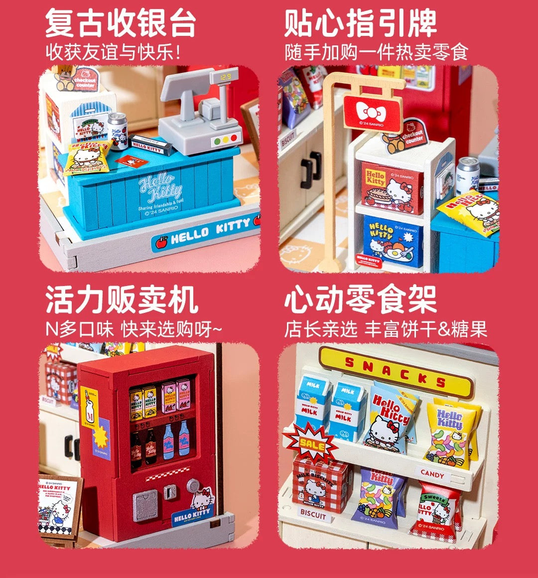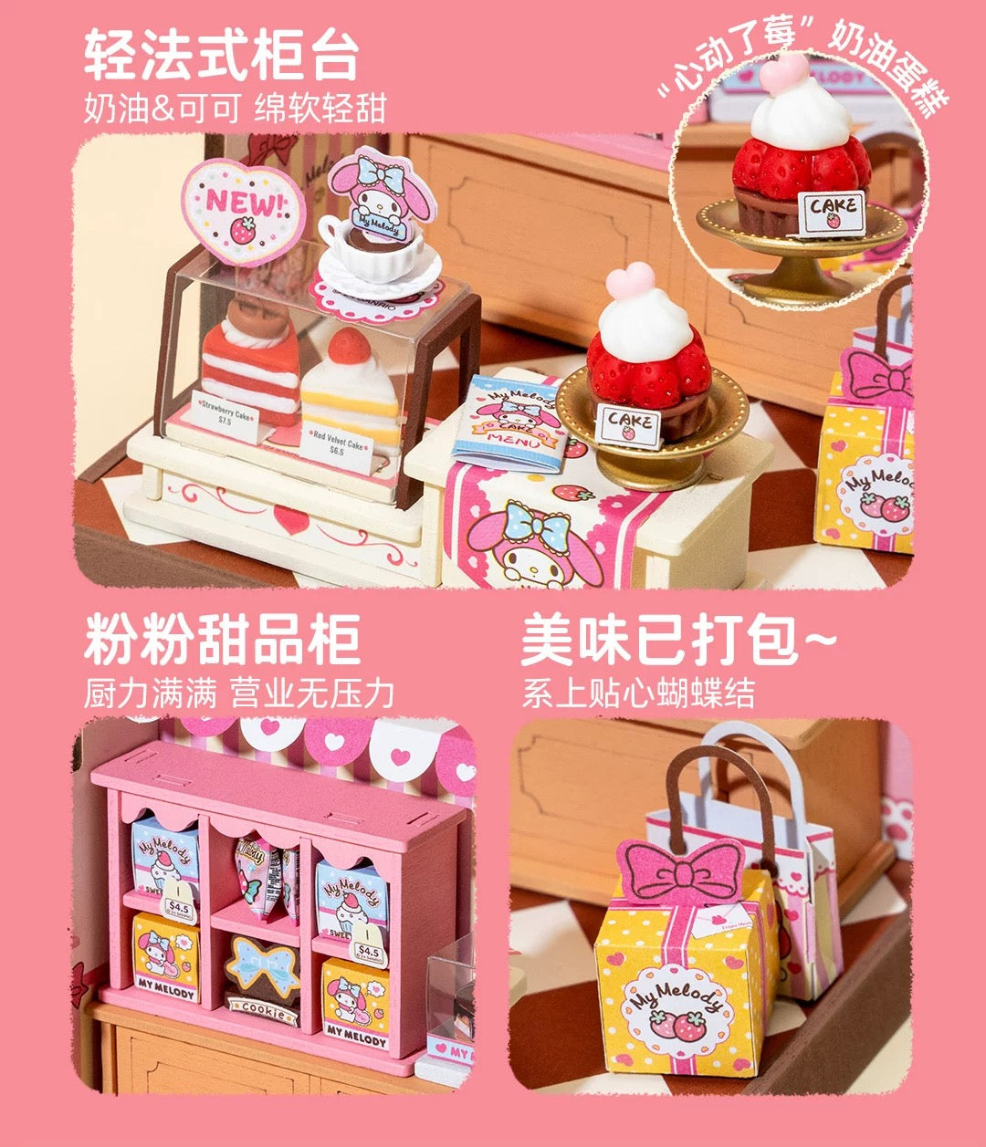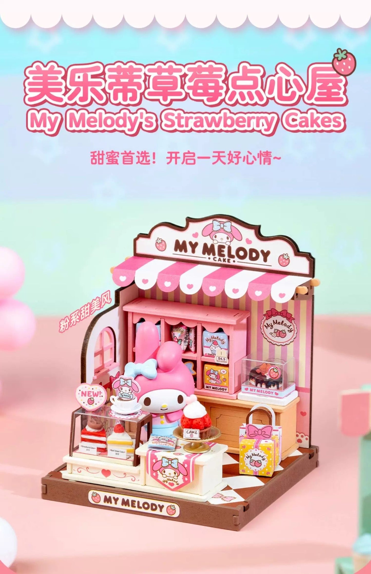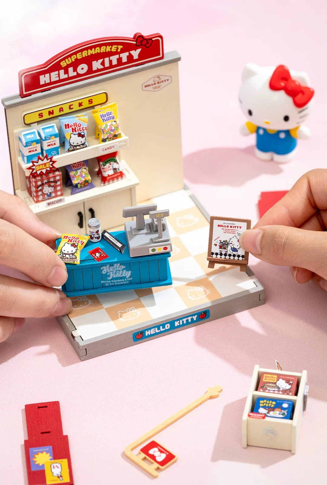 Rolife x Sanrio Character Style Shopping Street Craft Kits Set | Hello Kitty My Melody Pompompurin Pochacco - DIY Handmade Wooden Mini World Miniature Gift