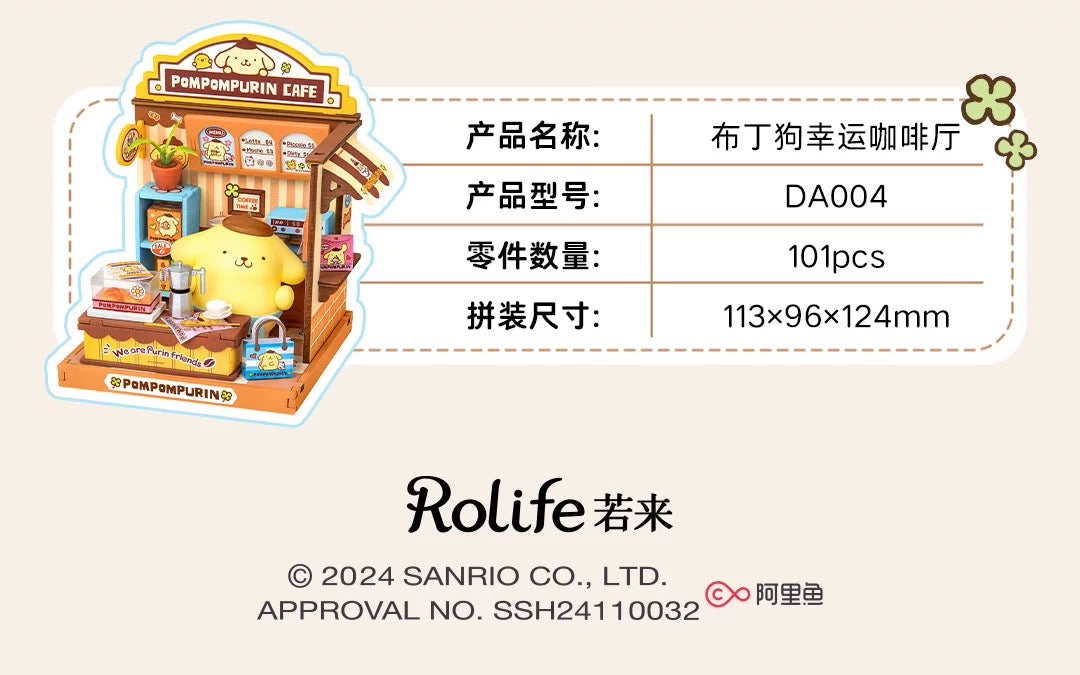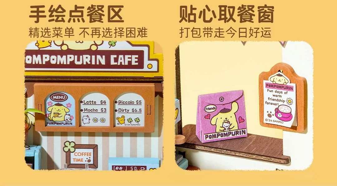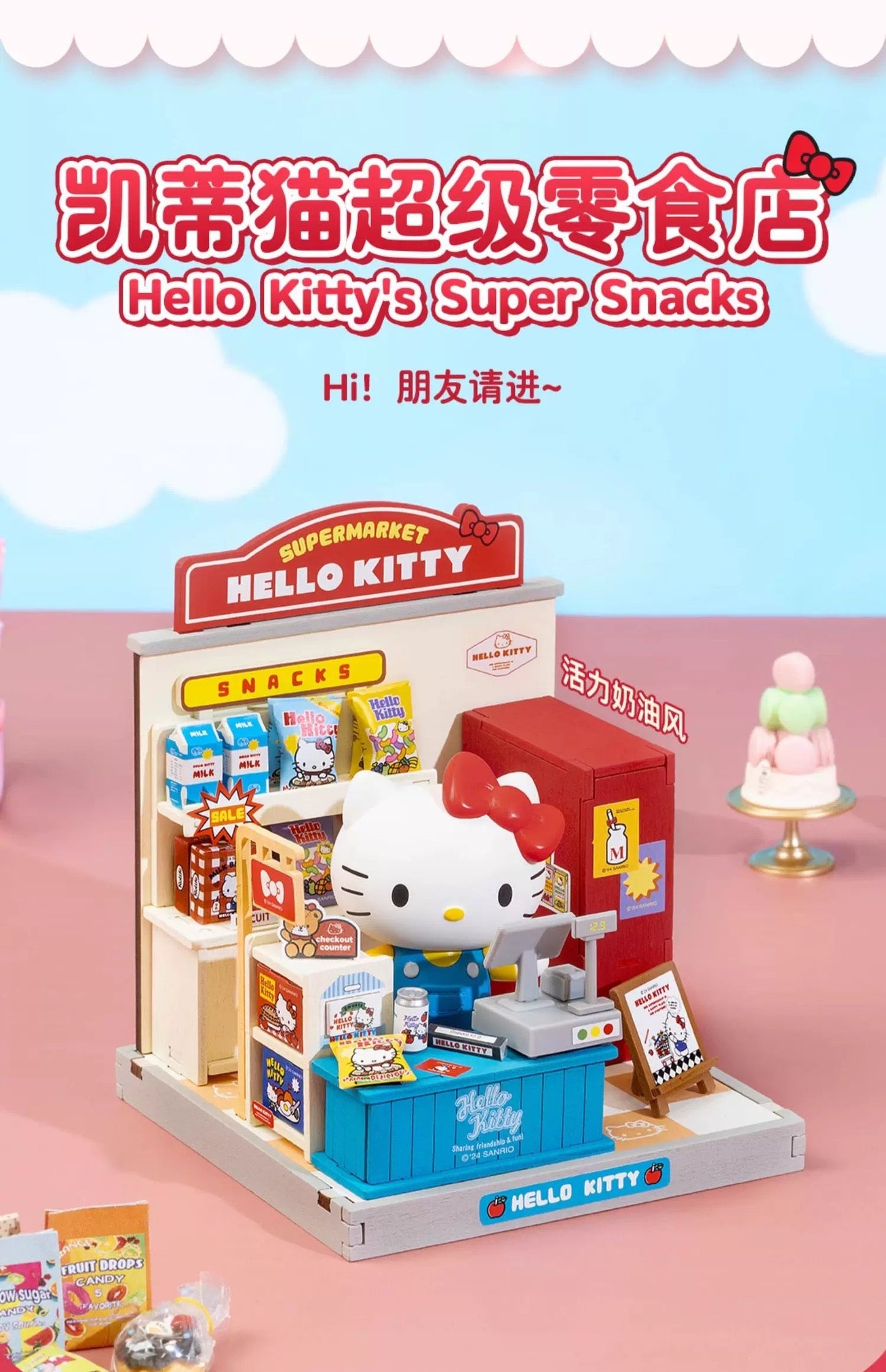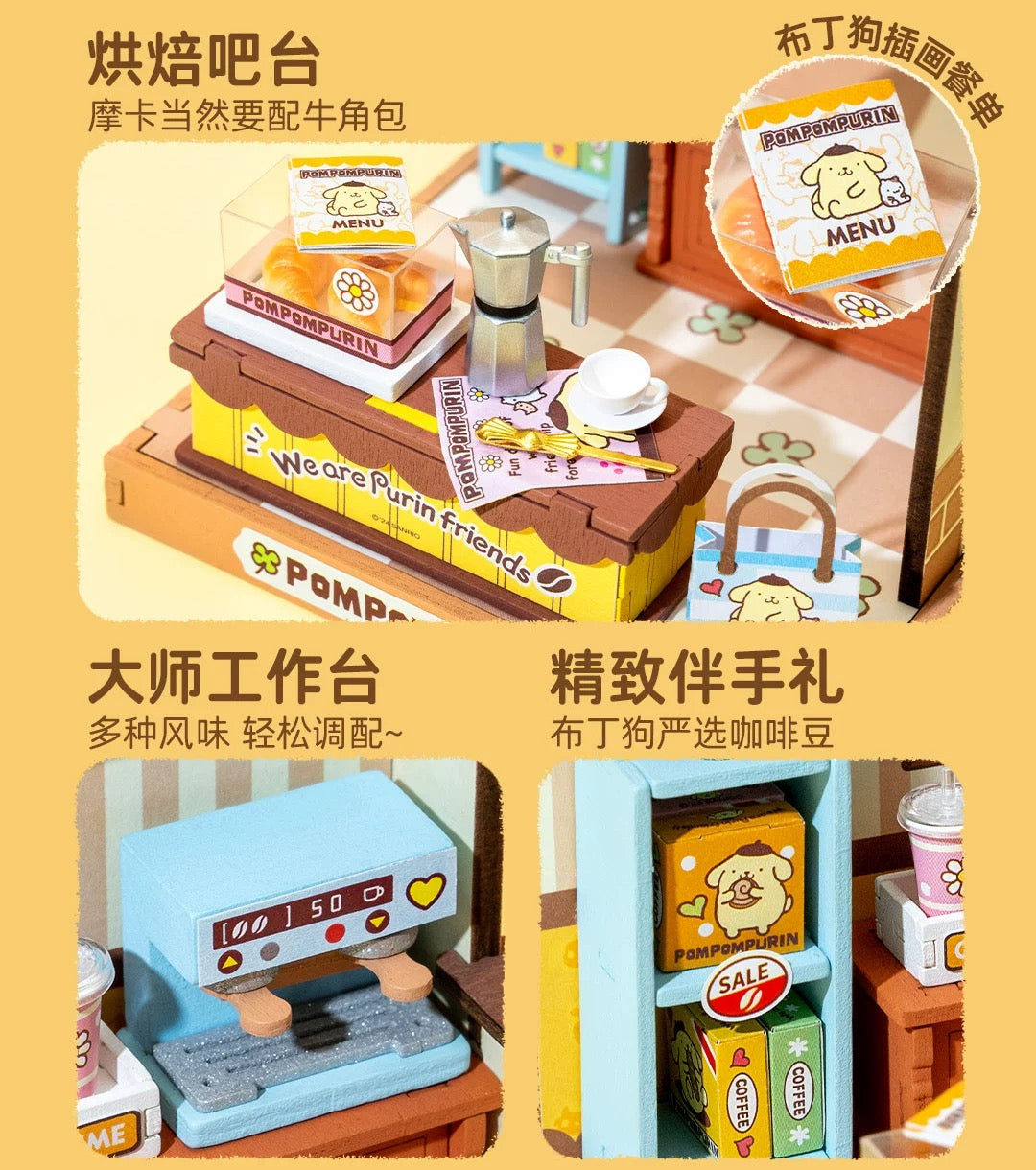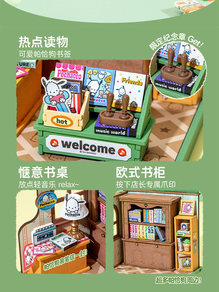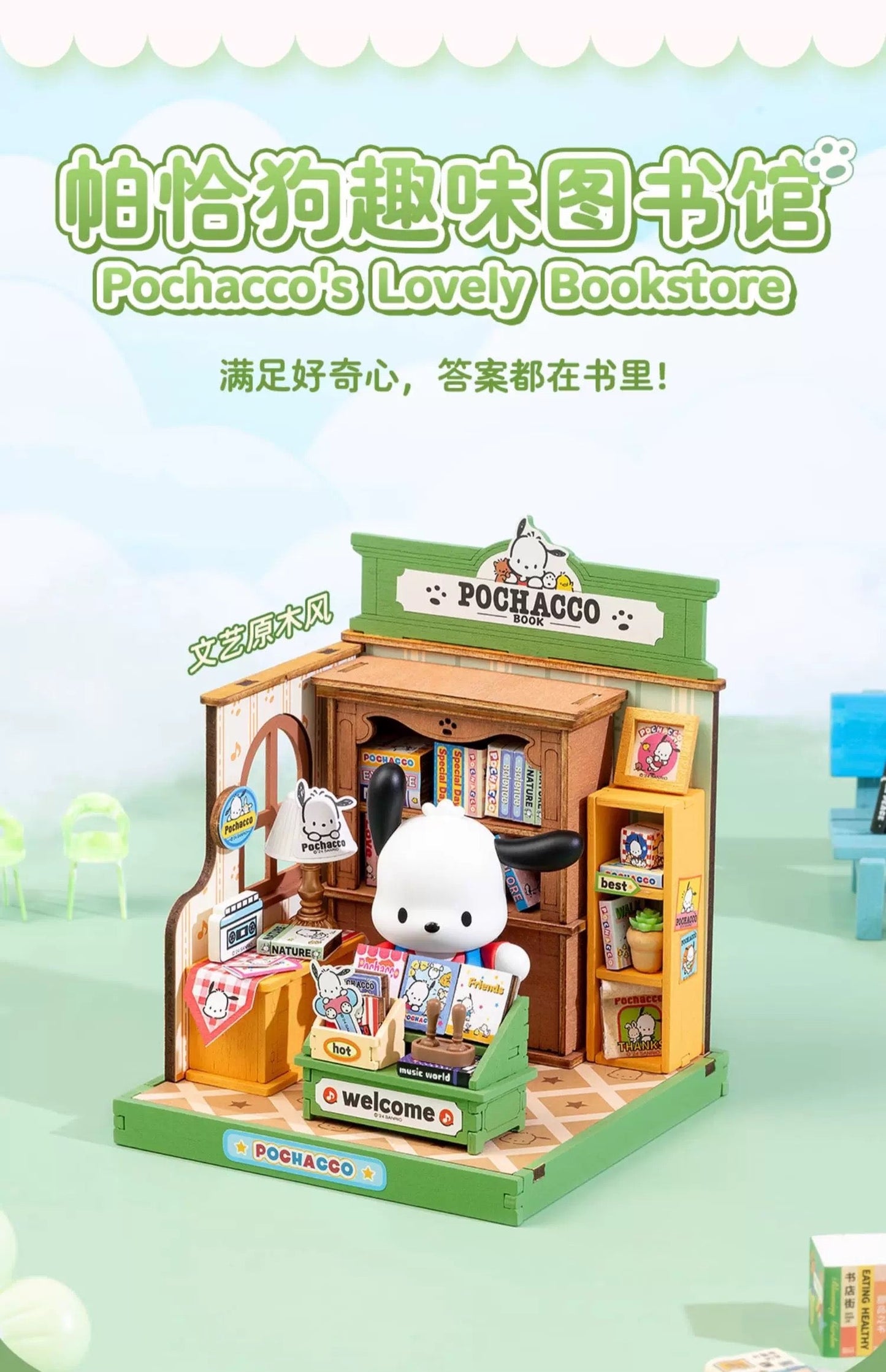 Rolife x Sanrio Character Style Shopping Street Craft Kits Set | Hello Kitty My Melody Pompompurin Pochacco - DIY Handmade Wooden Mini World Miniature Gift