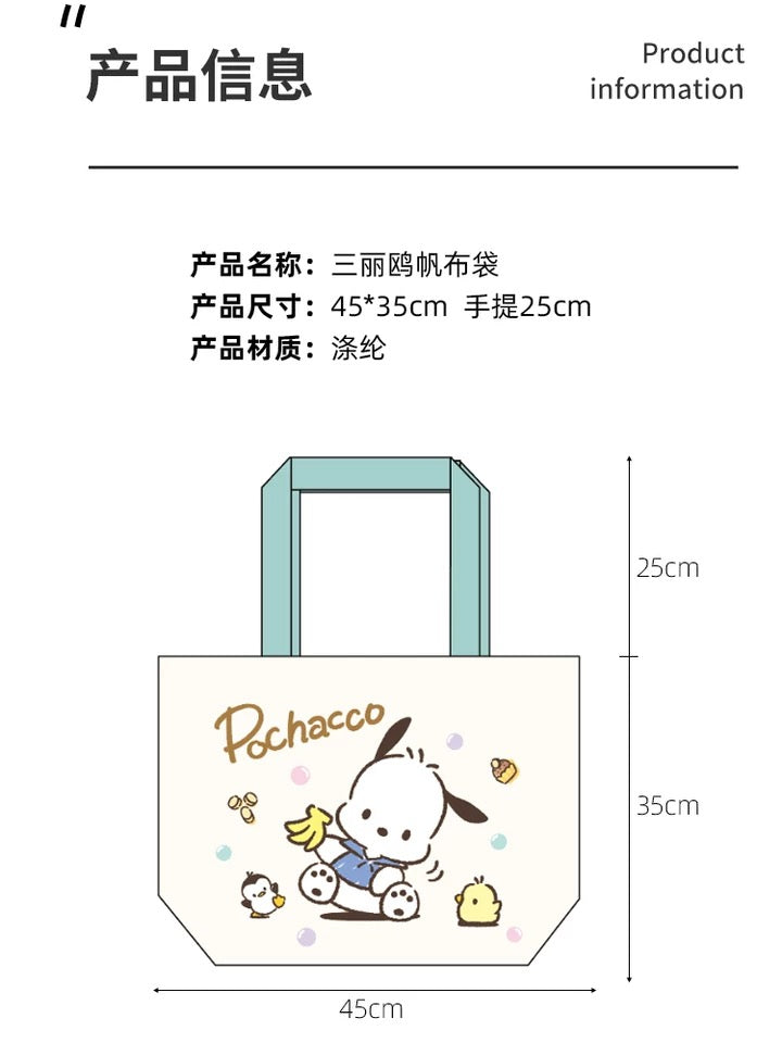 Sanrio 2023 Series Tote Bag | Hello Kitty My Melody Kuromi Cinnamoroll Pochacco Hangyodon - with Zipper