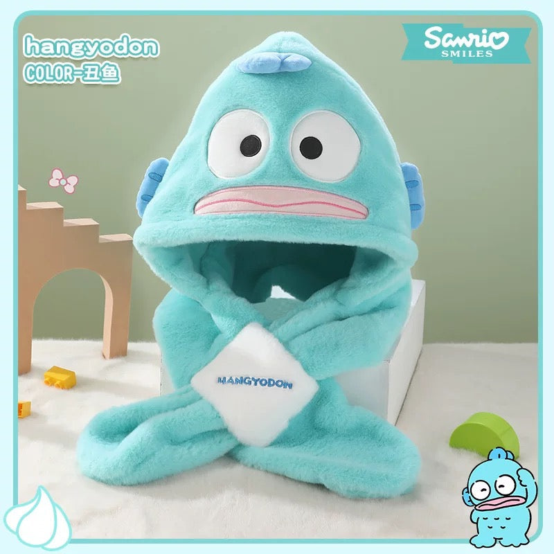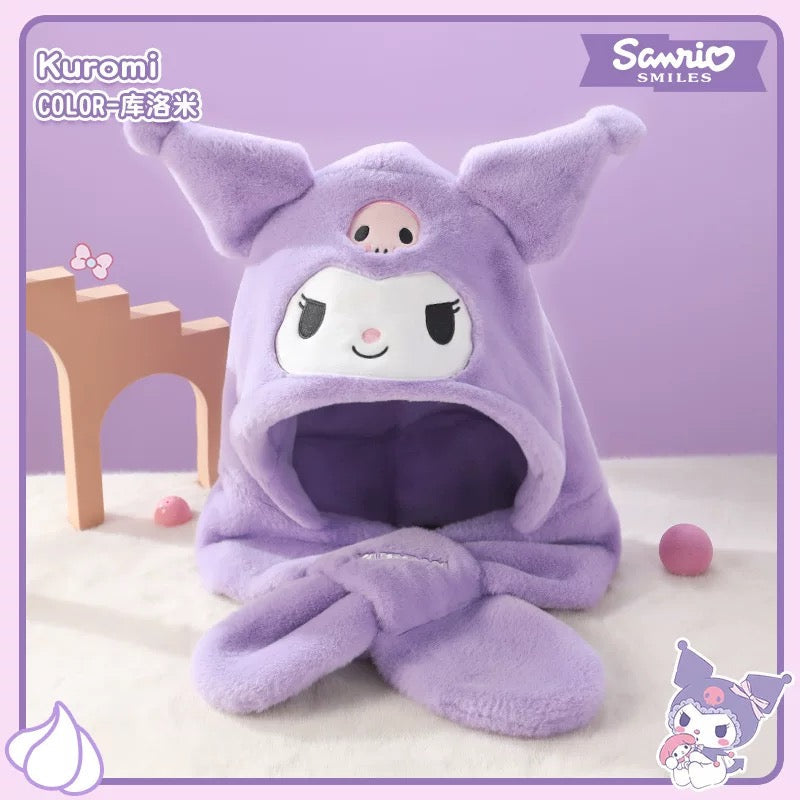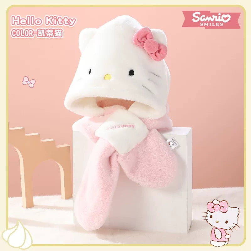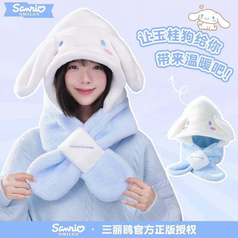 Sanrio Hat with Scarf Hat | Hello Kitty My Melody Kuromi Cinnamoroll Pochacco Hangyodon - Winter Warm Accessory Outfits
