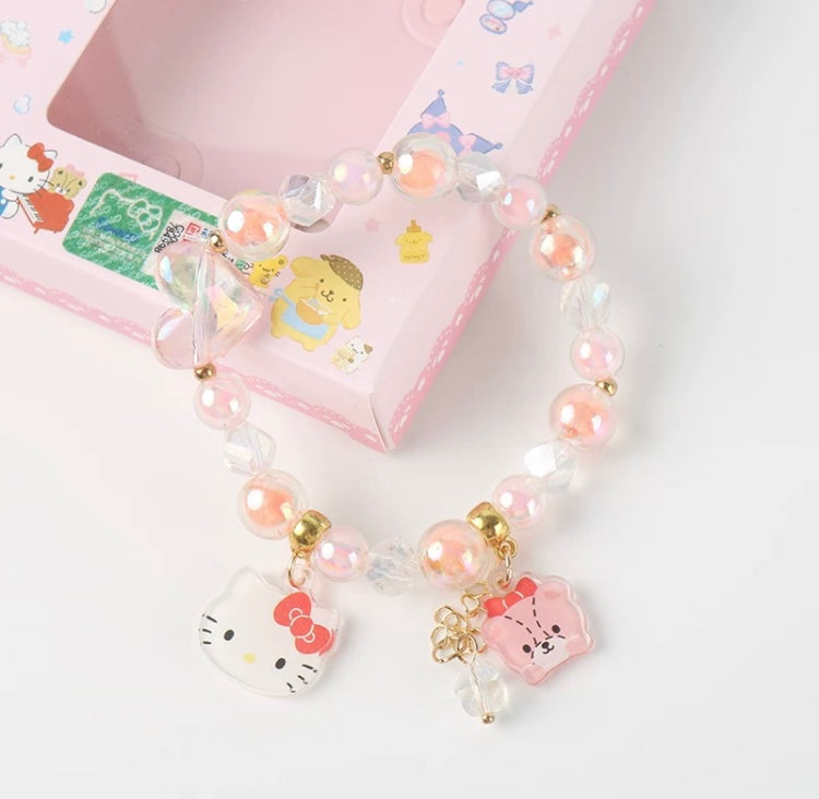 Sanrio Hello Kitty My Melody Kuromi Cinnamoroll Acrylic & Pearl Heart Bracelet