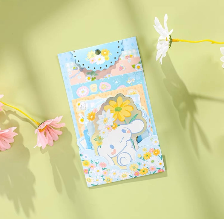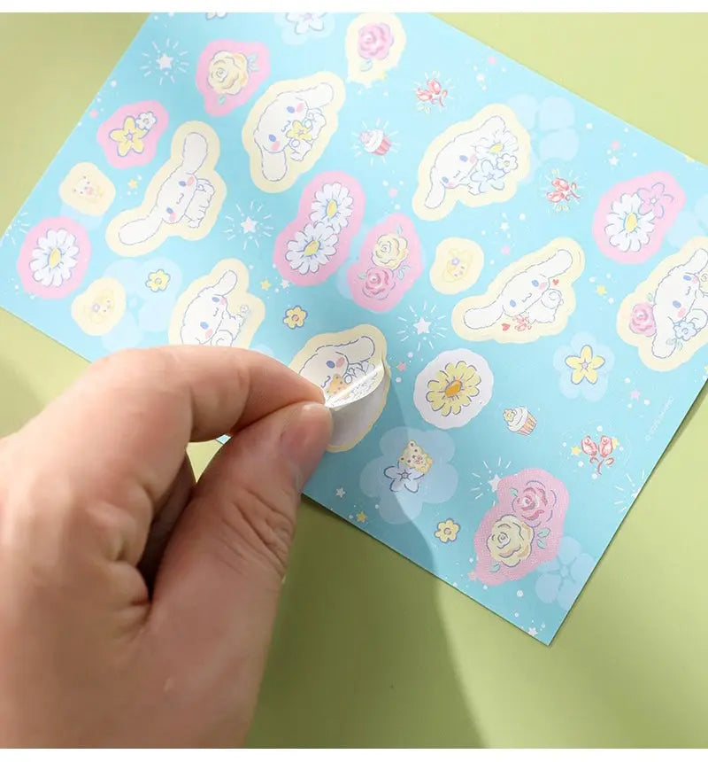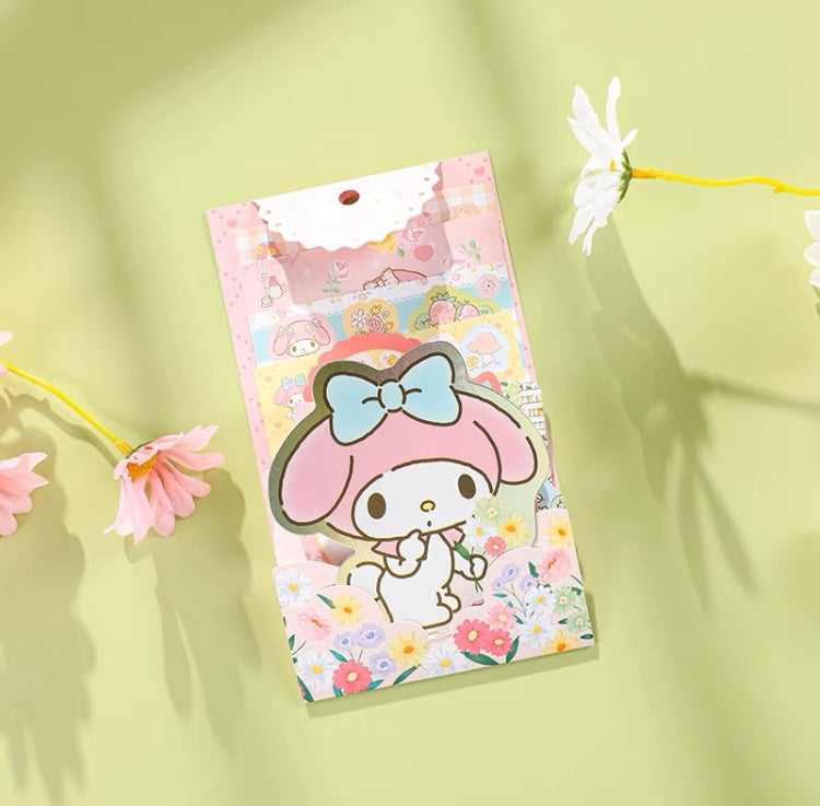 Sanrio Romantic Flower Stickers and Memo DIY Set | My Melody Kuromi Cinnamoroll Pochacco