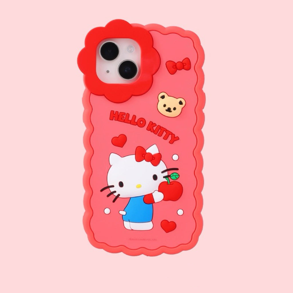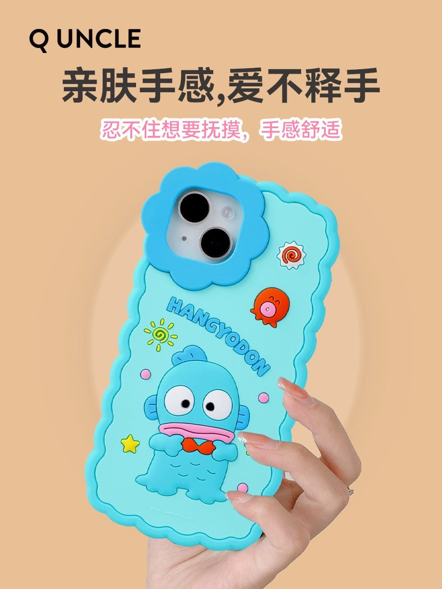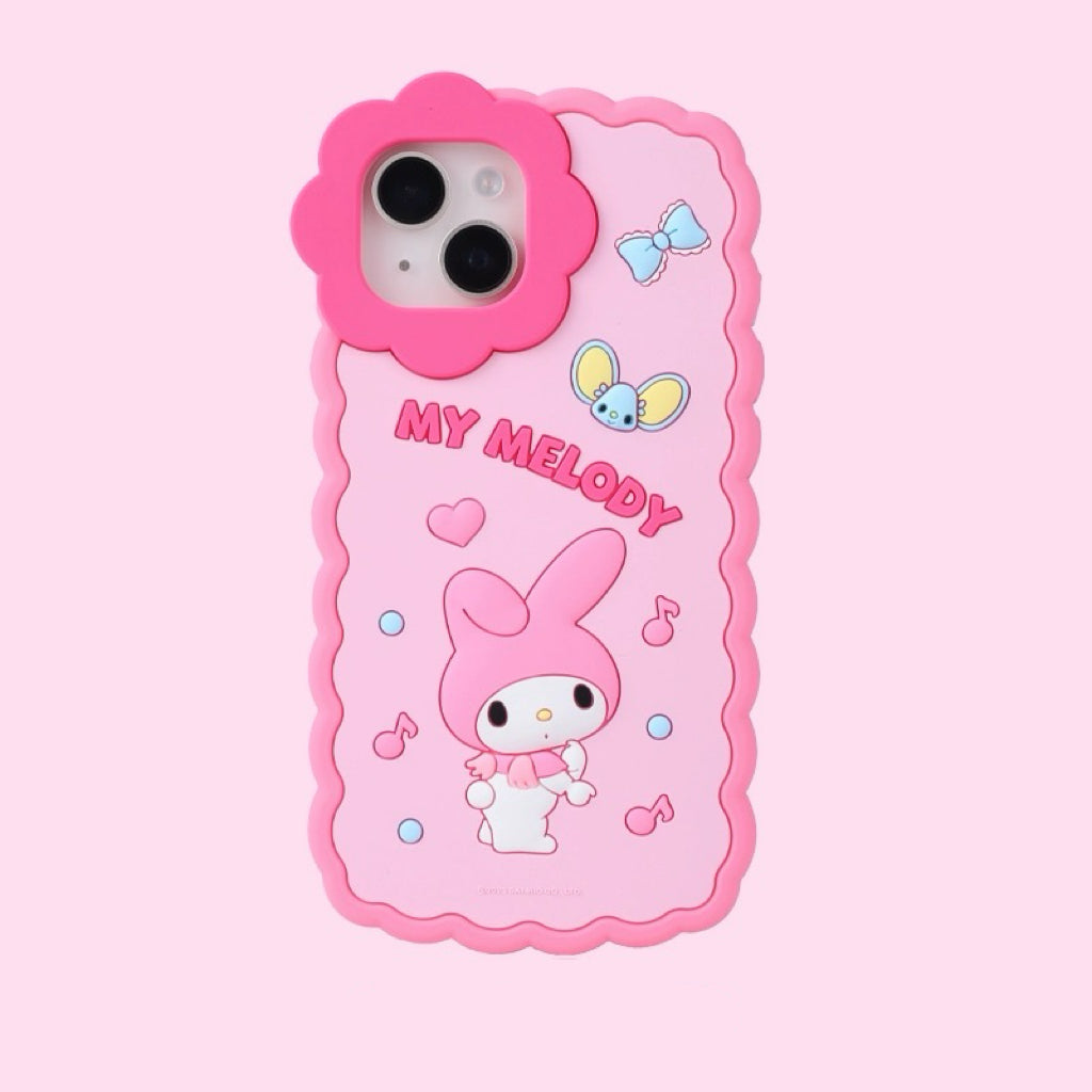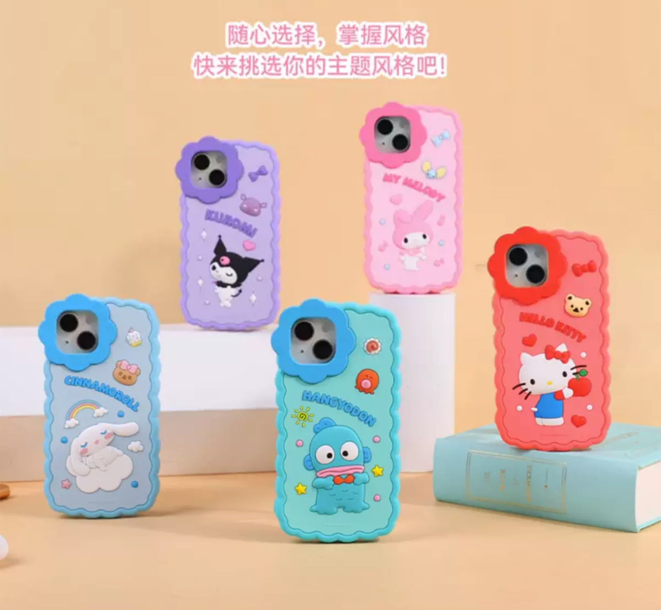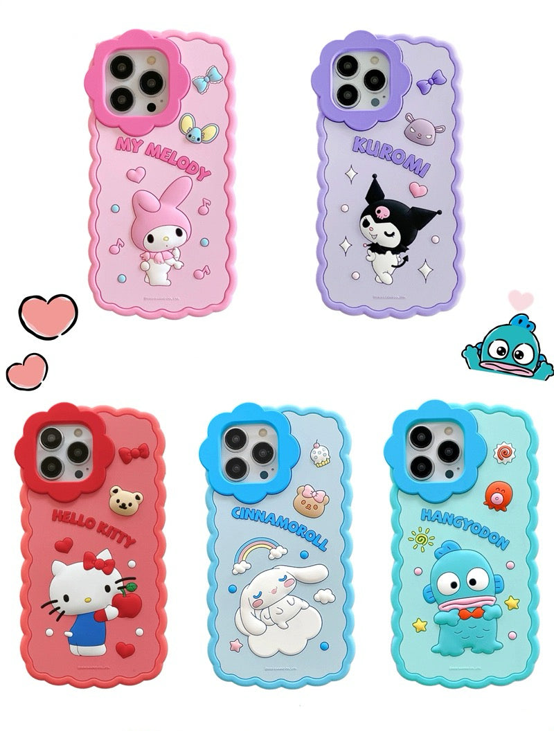 Sanrio Silicone Flower Line Phone Case | Hello Kitty My Melody Kuromi Cinnamoroll Hangyodon - iPhone Case iPhone 12 13 14 15 Pro Promax