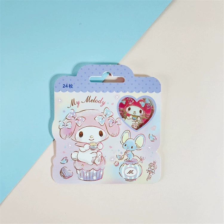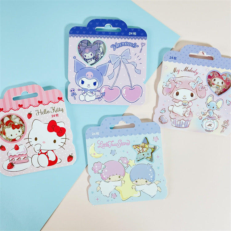 Sanrio Sweet Party Stickers Set | Hello Kitty My Melody Kuromi Little Twin Stars - Set of 24pcs