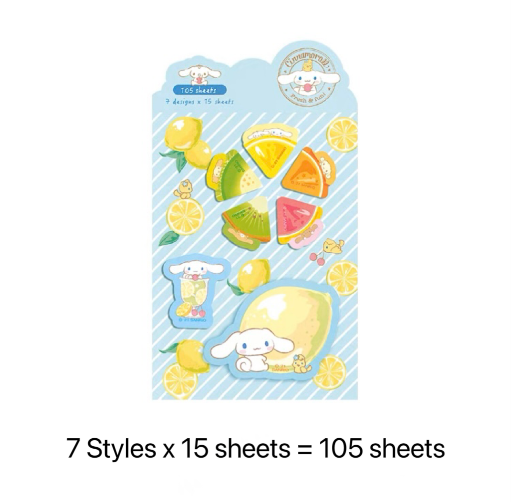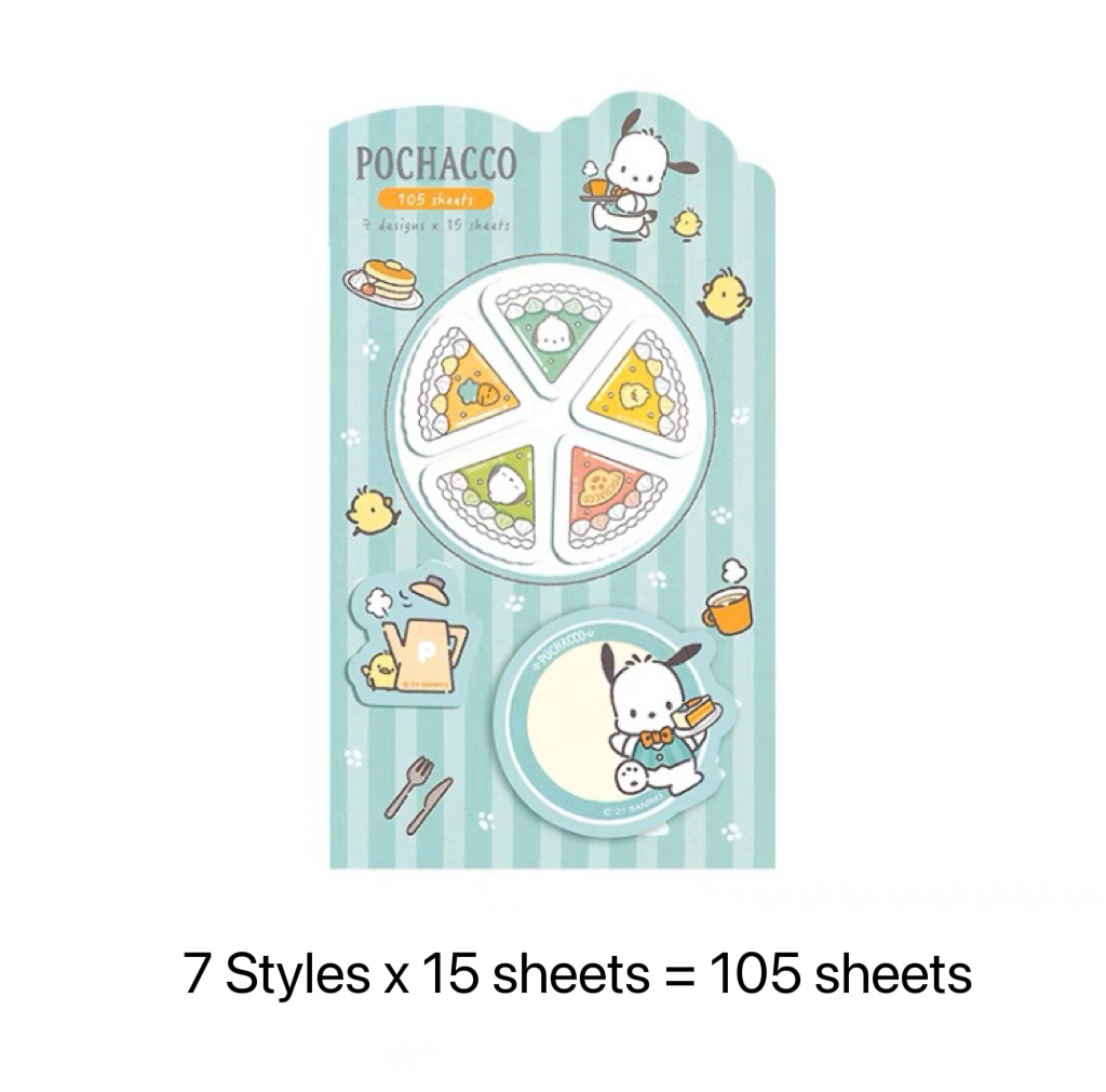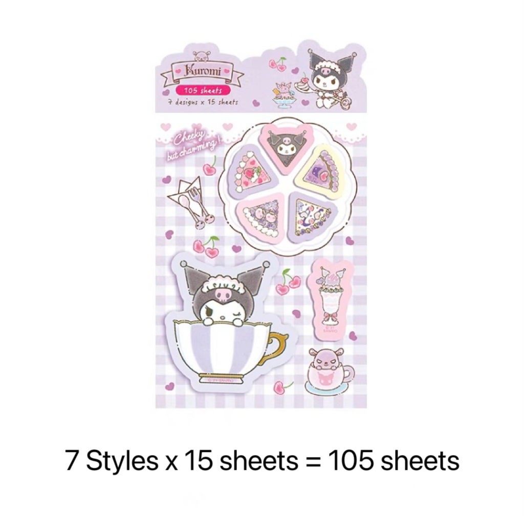 Sanrio Sweets & Food Memo Pad | Hello Kitty My Melody Kuromi Cinnamoroll Pompompurin Pocahcco Tuxedosam Bad Badtz Maru - 7 Style 105 Sheets