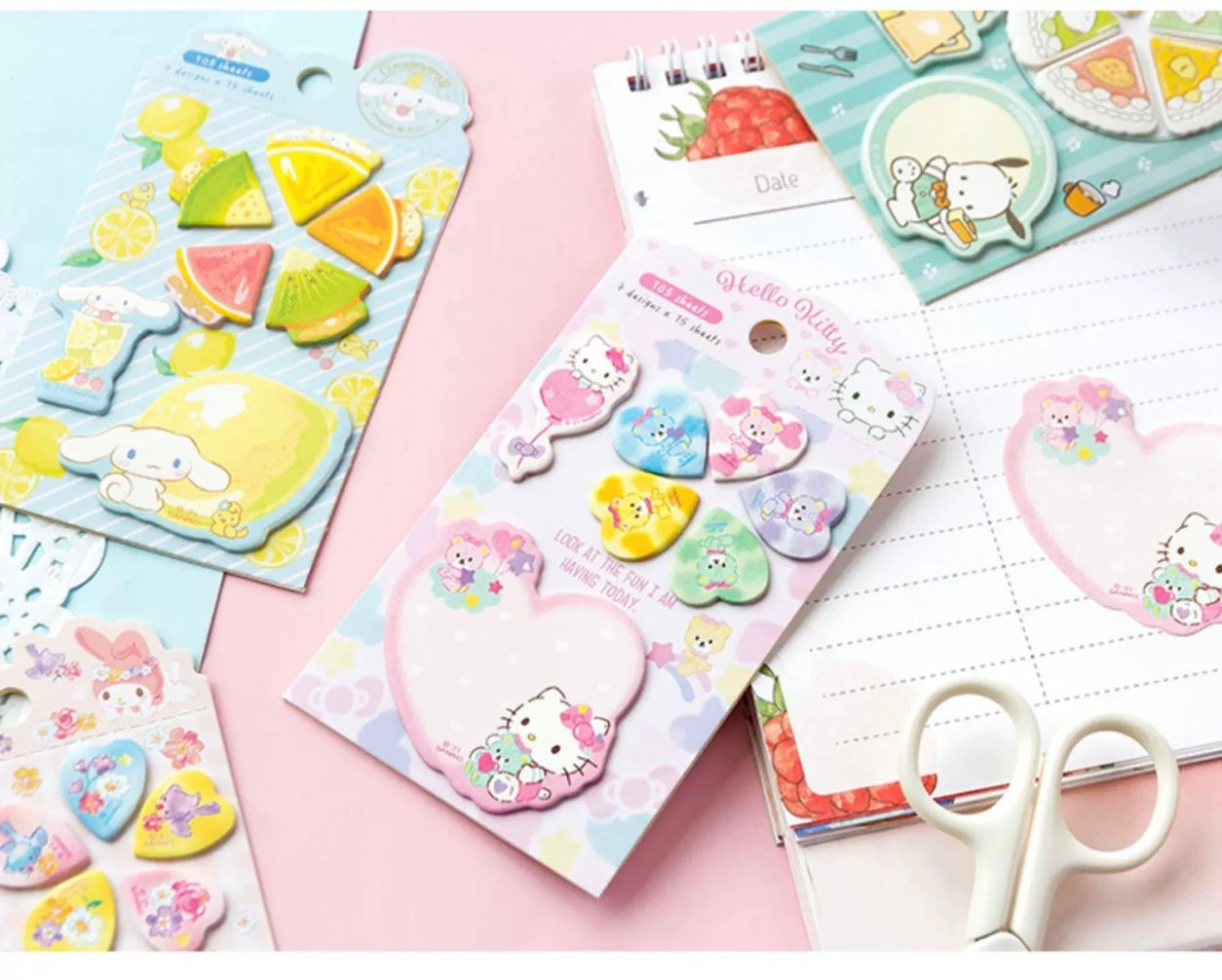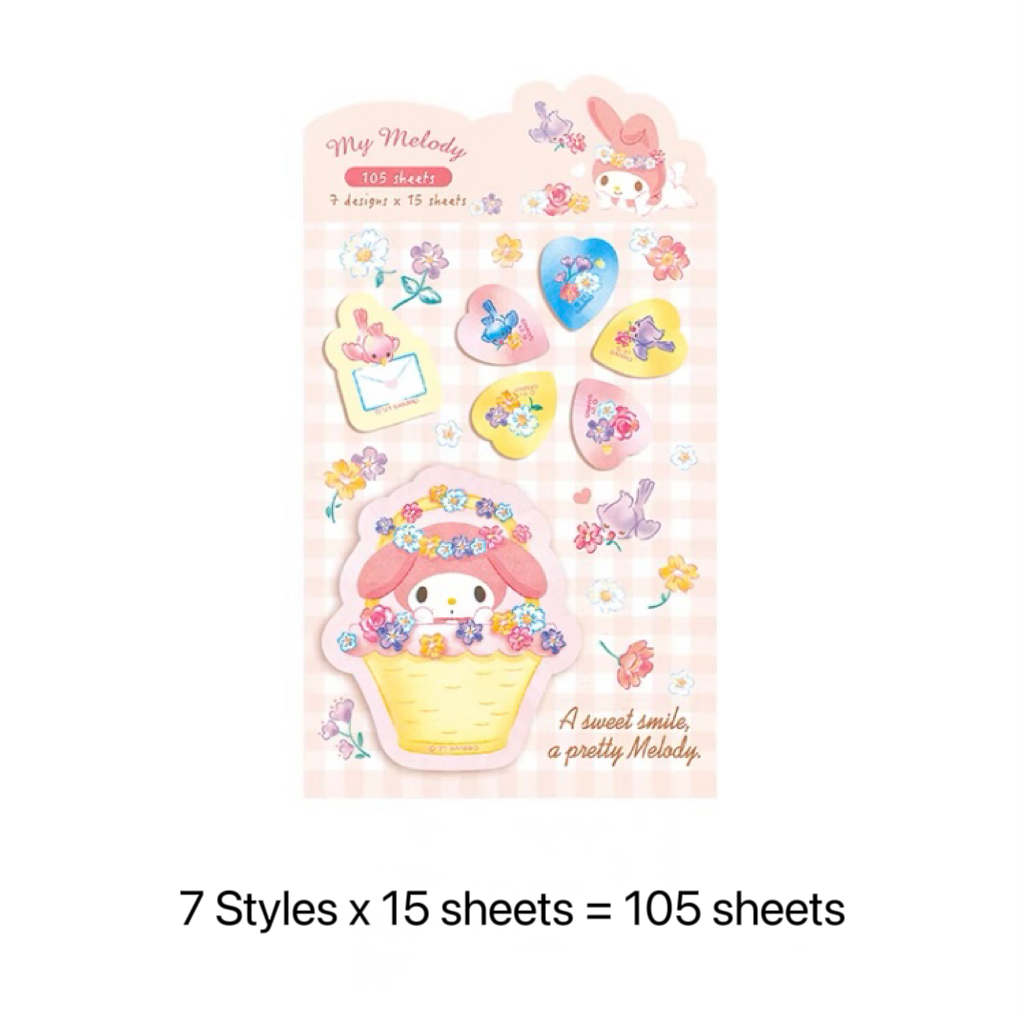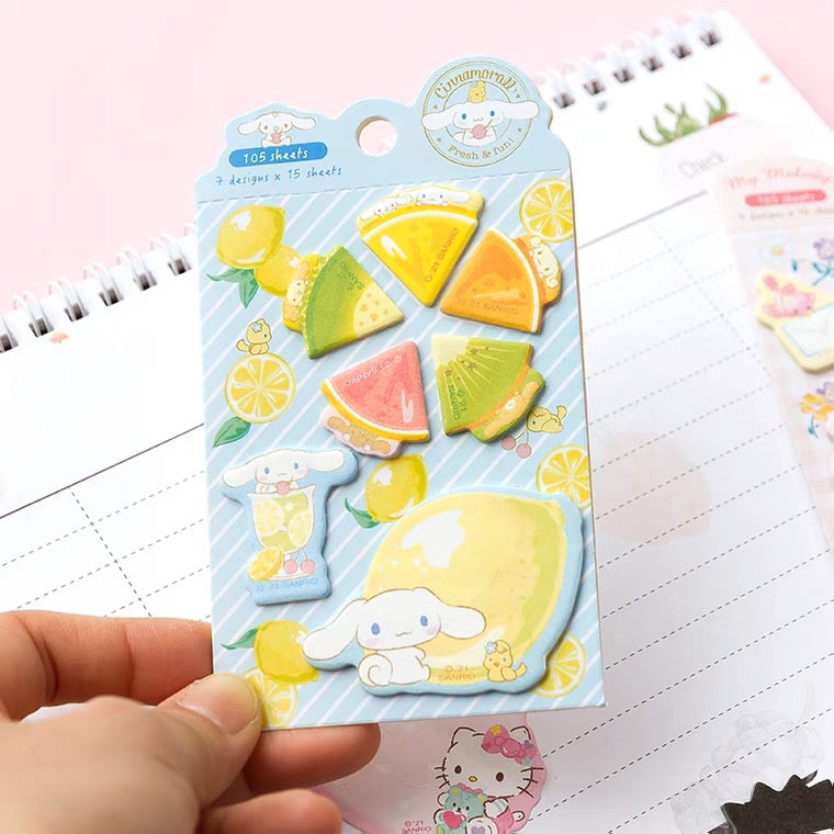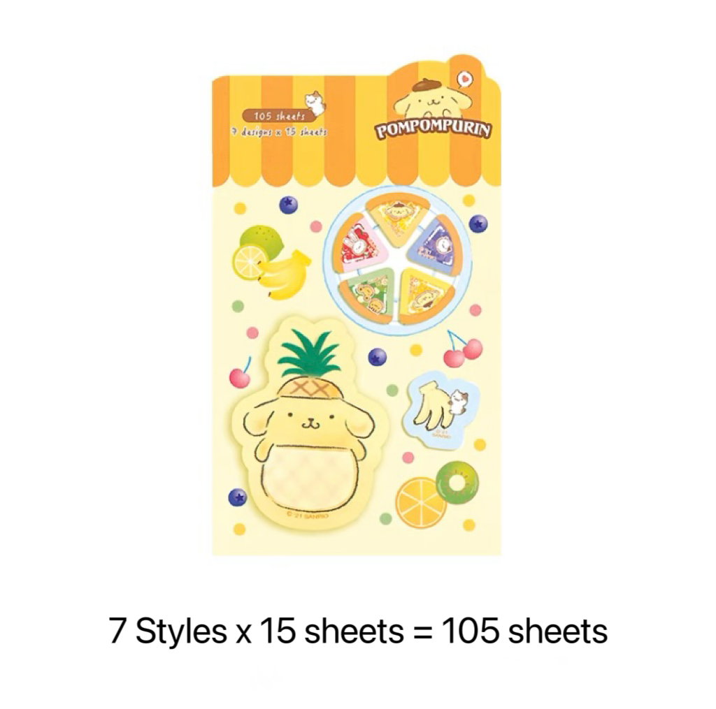 Sanrio Sweets & Food Memo Pad | Hello Kitty My Melody Kuromi Cinnamoroll Pompompurin Pocahcco Tuxedosam Bad Badtz Maru - 7 Style 105 Sheets