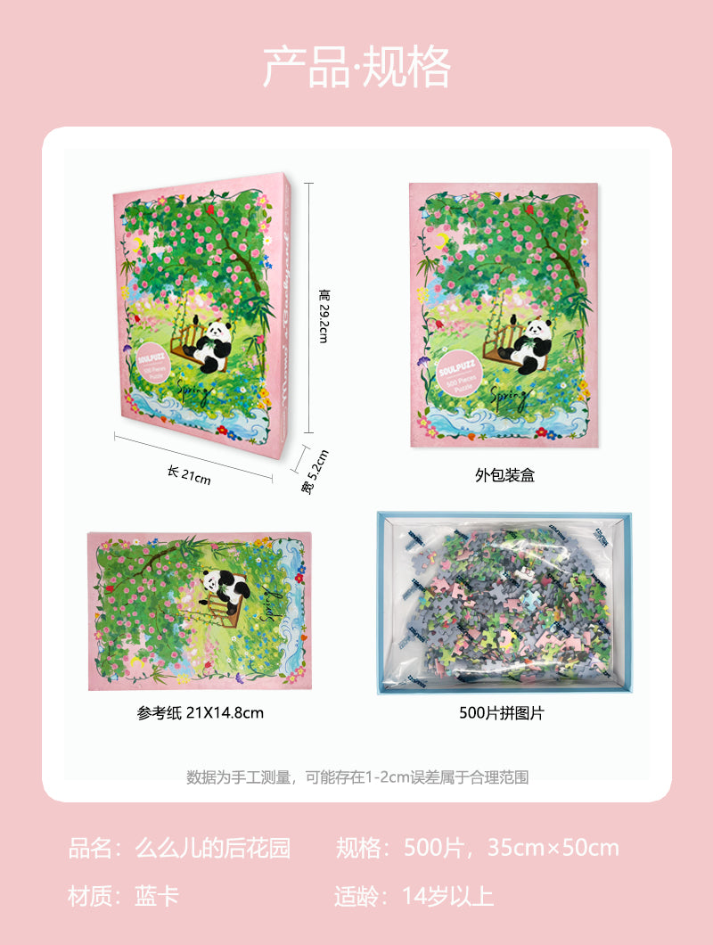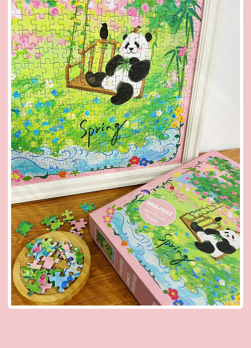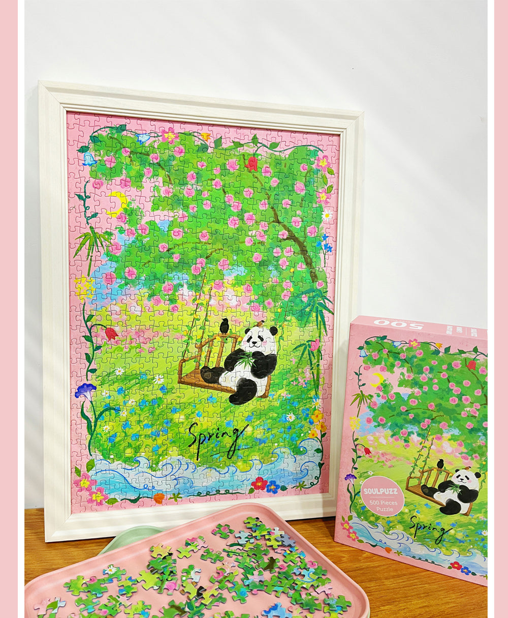 SOULPUZZ 500 Pieces Puzzle | Momo's Backyard - Panda with Swing in Spring Flower Garden Cute Animal Difficulty Stress Relief Couples Trendy Gifts Home Decoration