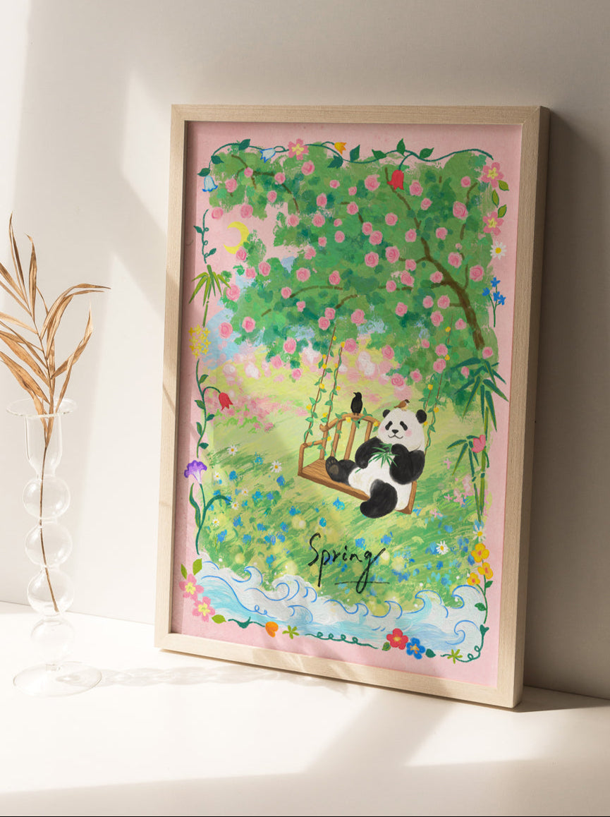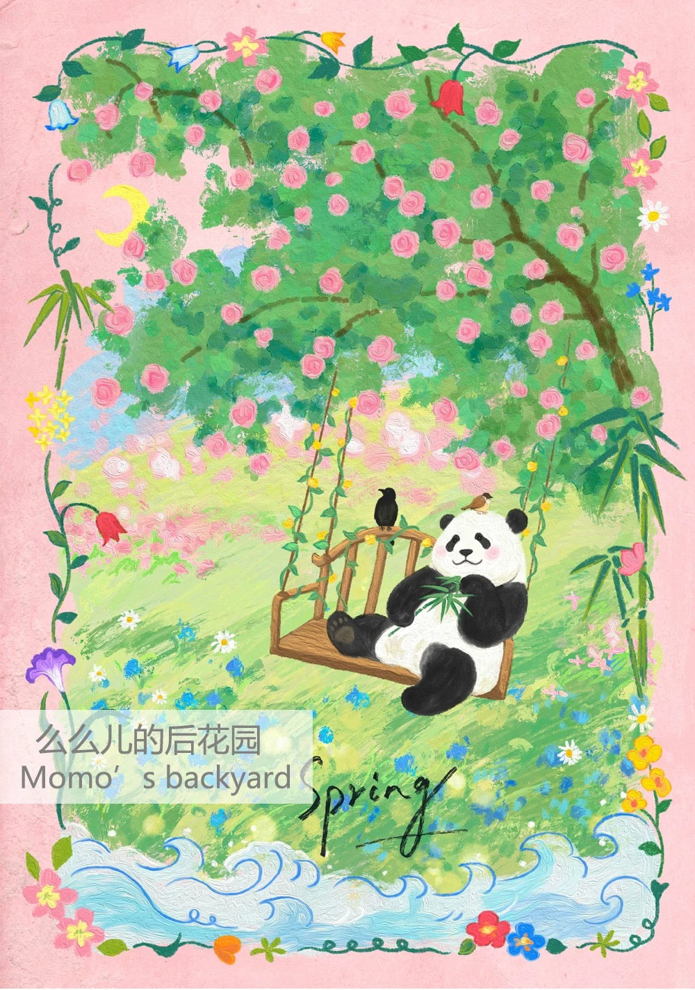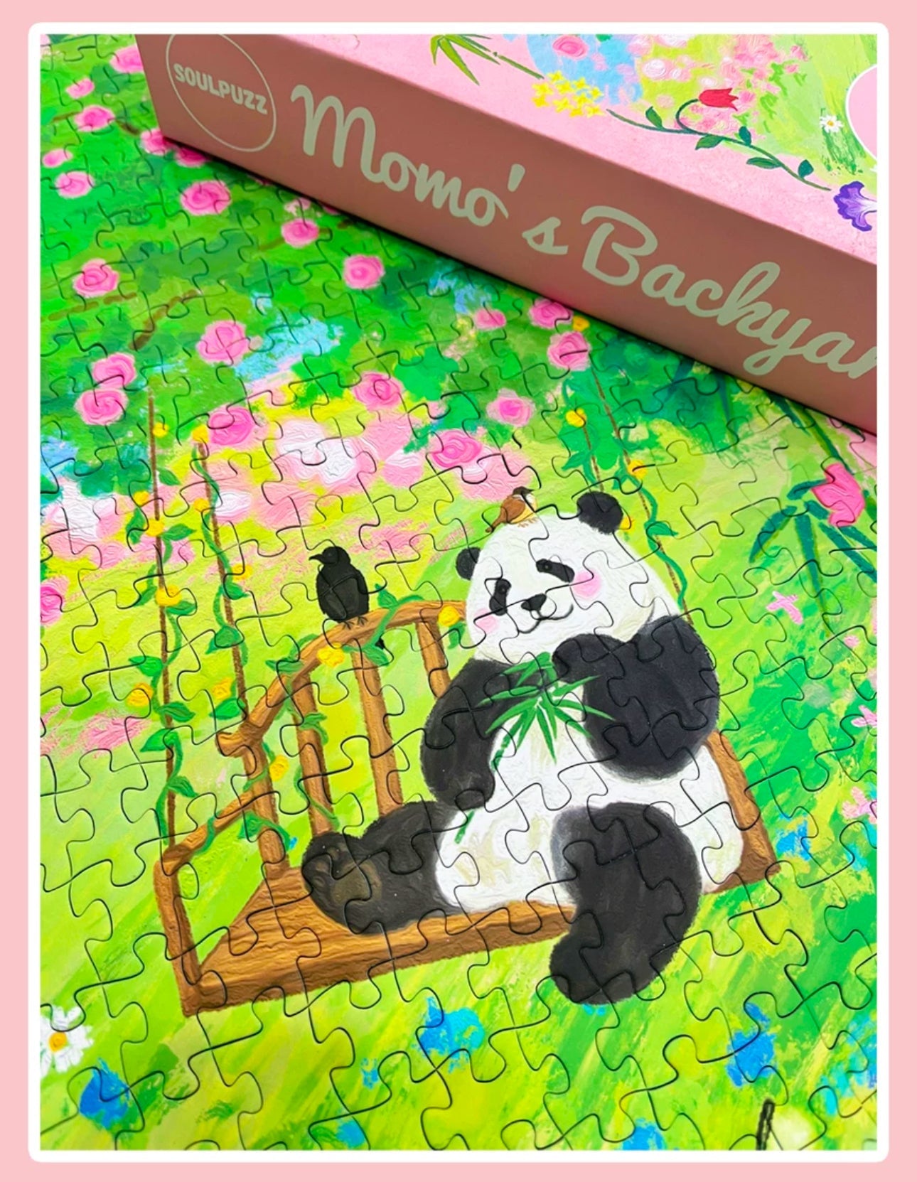 SOULPUZZ 500 Pieces Puzzle | Momo's Backyard - Panda with Swing in Spring Flower Garden Cute Animal Difficulty Stress Relief Couples Trendy Gifts Home Decoration