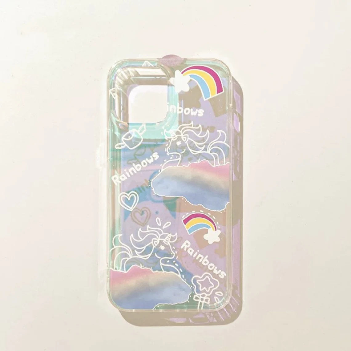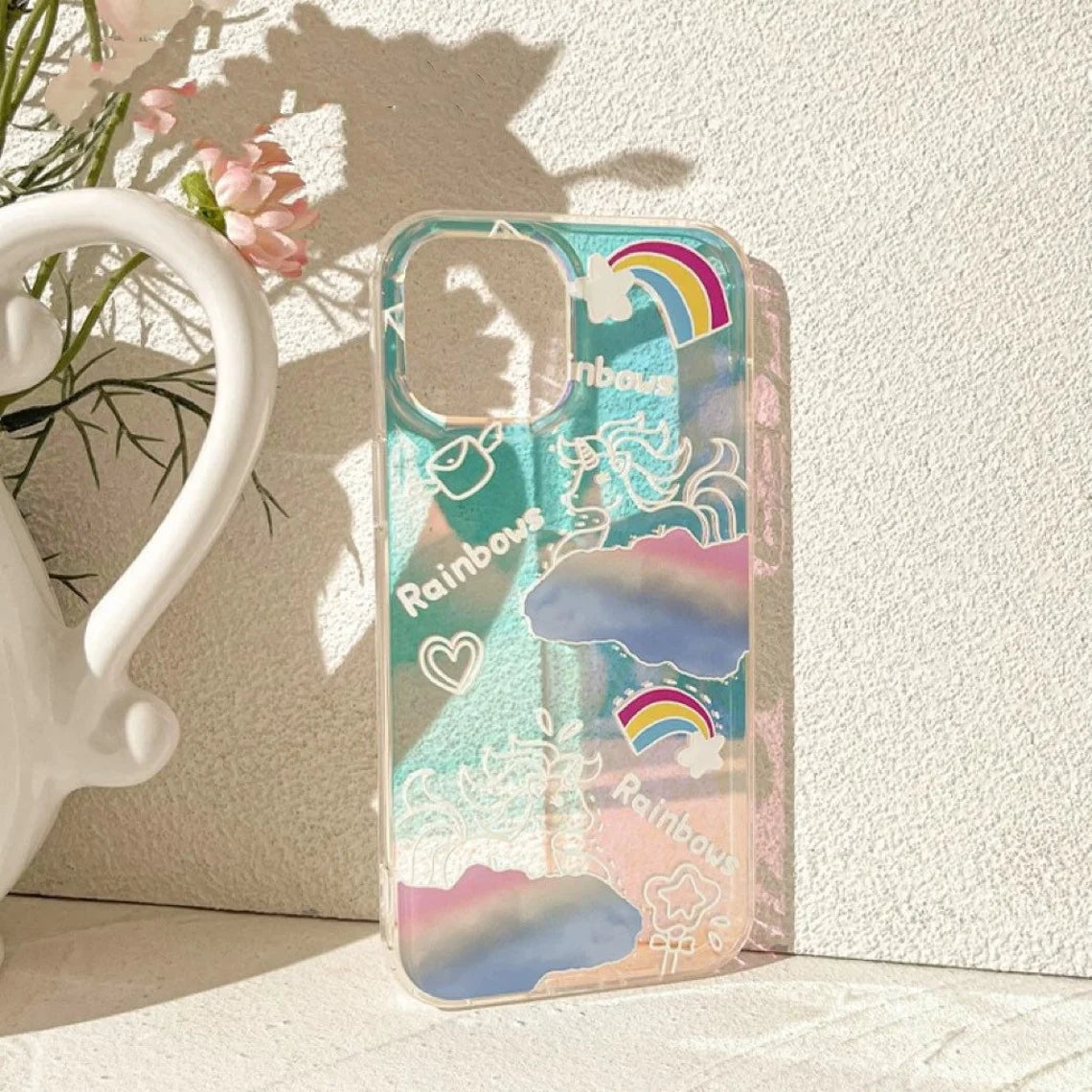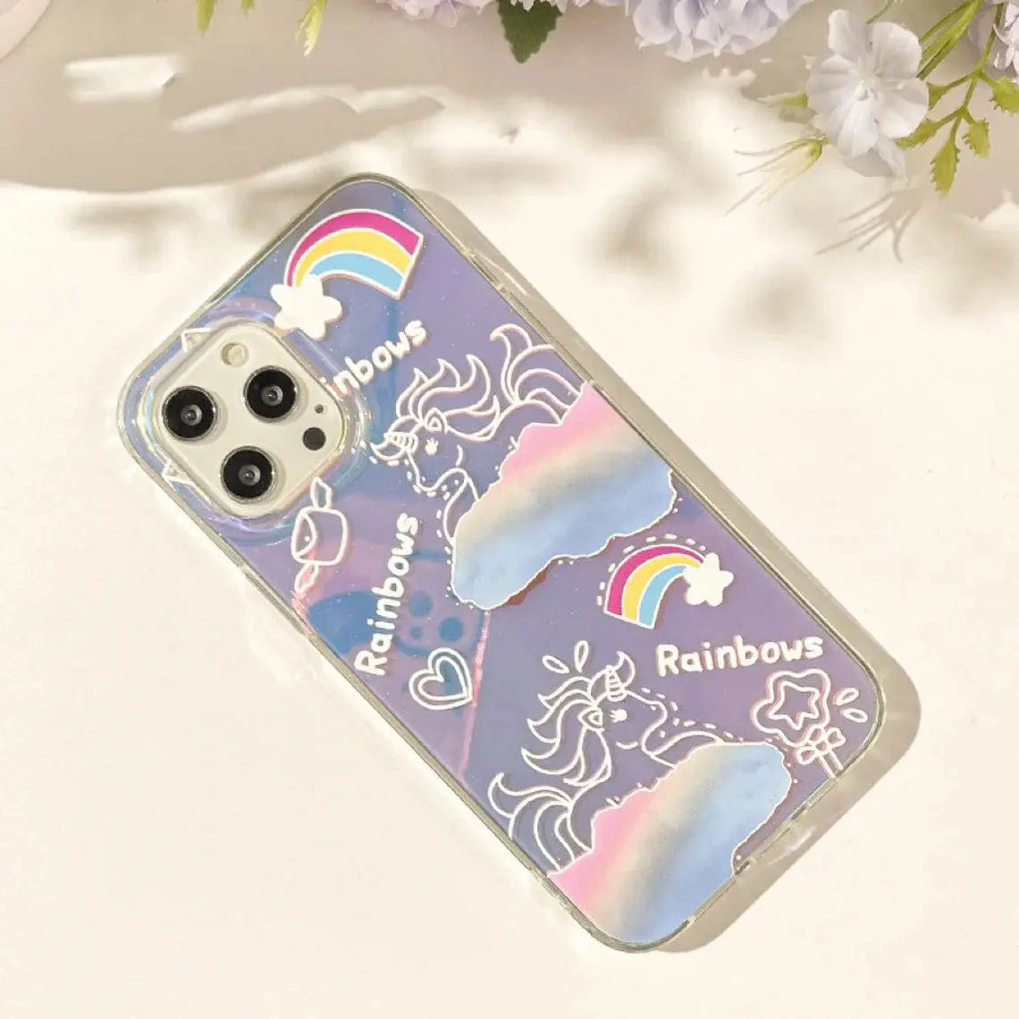 Unicorns with Rainbow Aurora Laser iPhone Case 11 12 13 14 15 Pro Promax 13mini